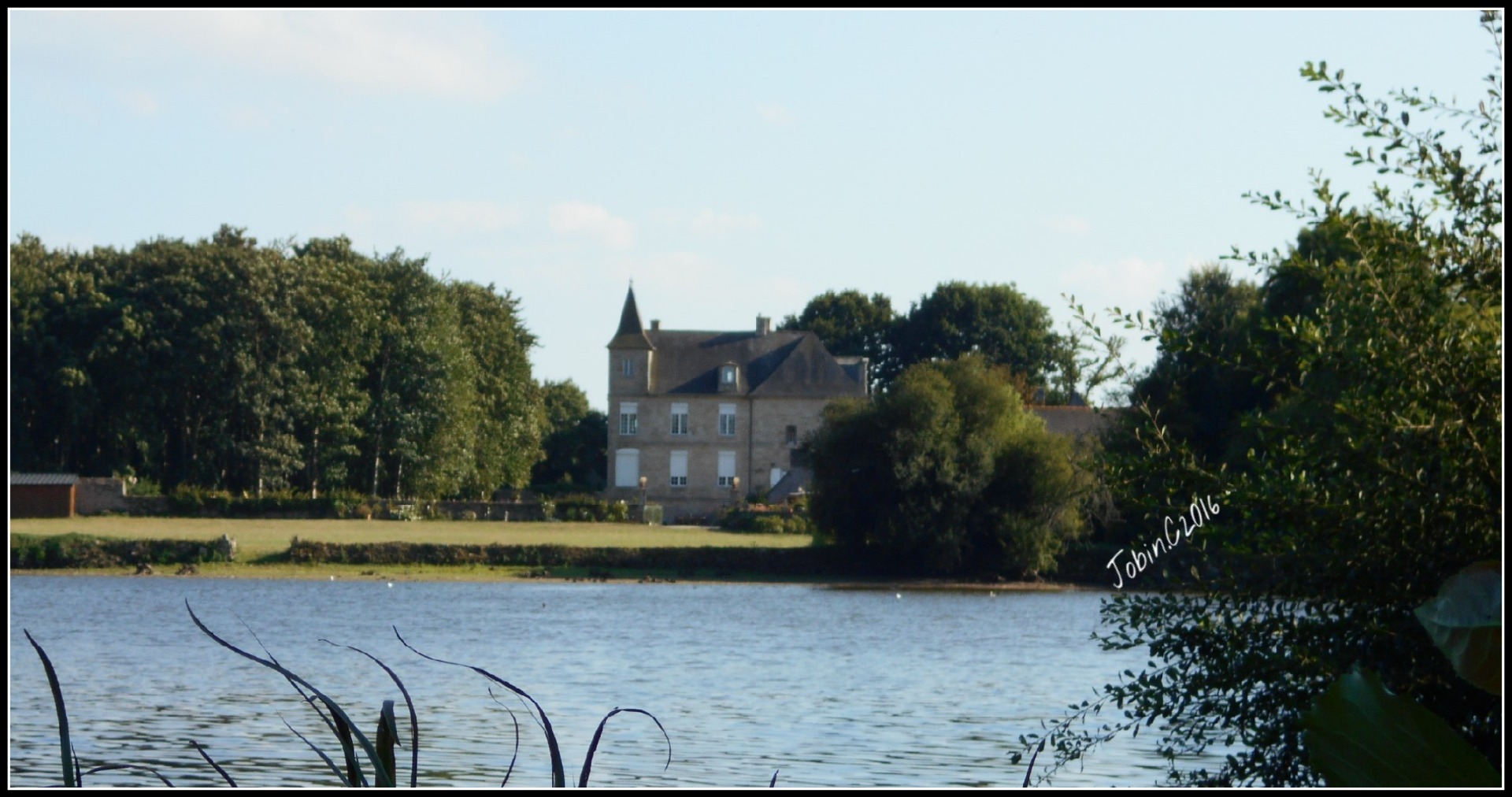 La prairie d'1 hectare au bord de l'étang, avec son chapiteau pouvant acceuillir jusqu'à 200 personnes .